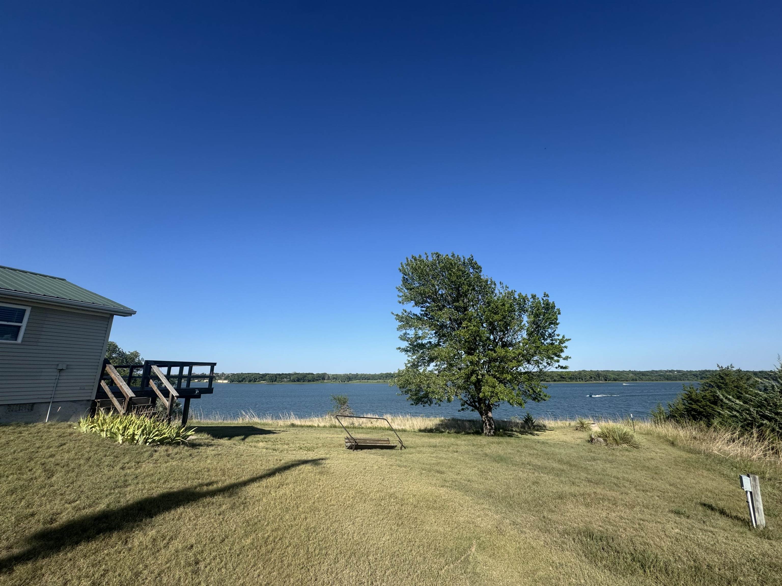 Lake life awaits at this charming 3-bed, 1.5-bath retreat on beautiful Harry Strunk Lake! Nestled in a prime location with stunning views, this home features an open-concept layout that’s perfect for gathering with family & friends. Step outside onto the large deck to soak in the scenery or enjoy a quiet morning coffee with the lake as your backdrop. The detached garage offers plenty of space for lake toys, tools, or extra storage. Don’t miss your chance to own a slice of lakefront paradise!