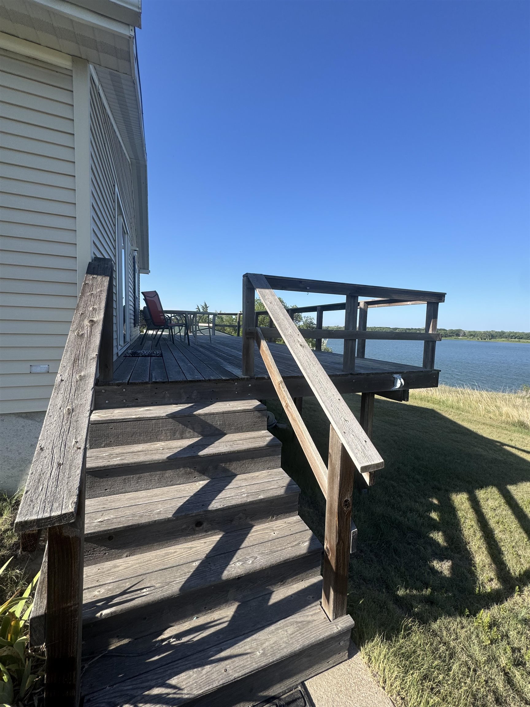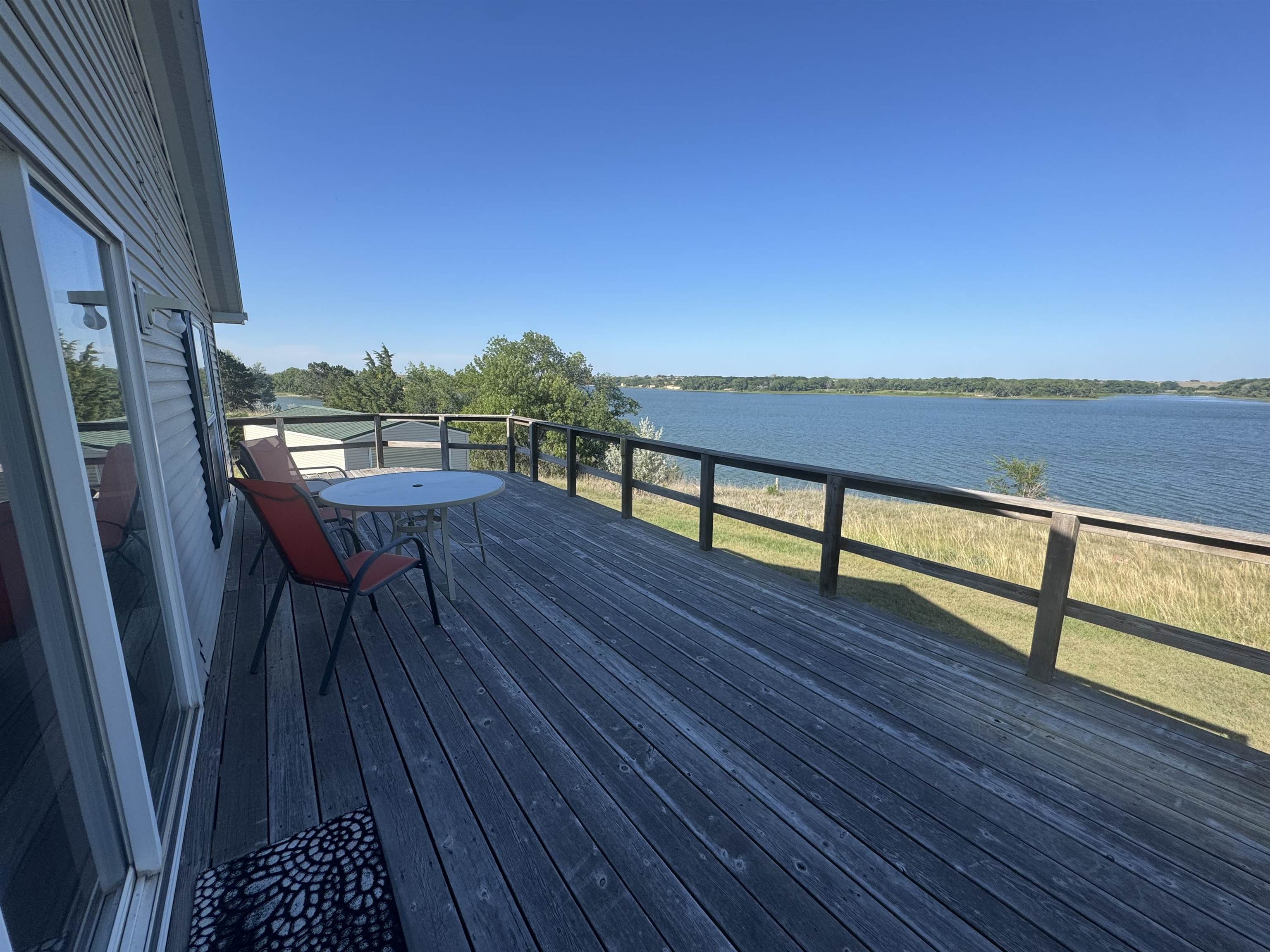 Lake life awaits at this charming 3-bed, 1.5-bath retreat on beautiful Harry Strunk Lake! Nestled in a prime location with stunning views, this home features an open-concept layout that’s perfect for gathering with family & friends. Step outside onto the large deck to soak in the scenery or enjoy a quiet morning coffee with the lake as your backdrop. The detached garage offers plenty of space for lake toys, tools, or extra storage. Don’t miss your chance to own a slice of lakefront paradise!