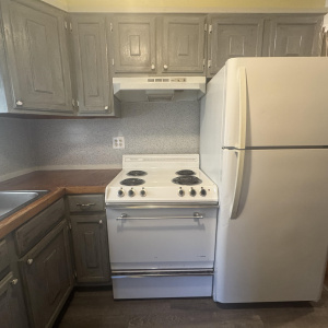 : Electric Range, Appliances Negotiable, Refrigerator, Laminate, Range Hood