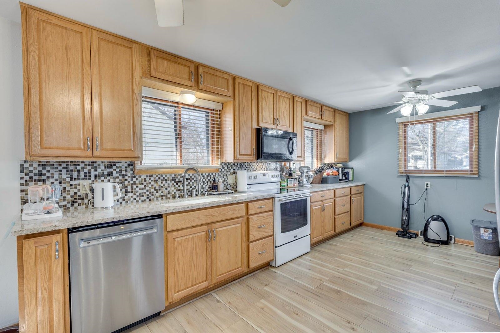 : Electric Range, Dishwasher, Garbage Disposal, Microwave, Eat-in, Laminate